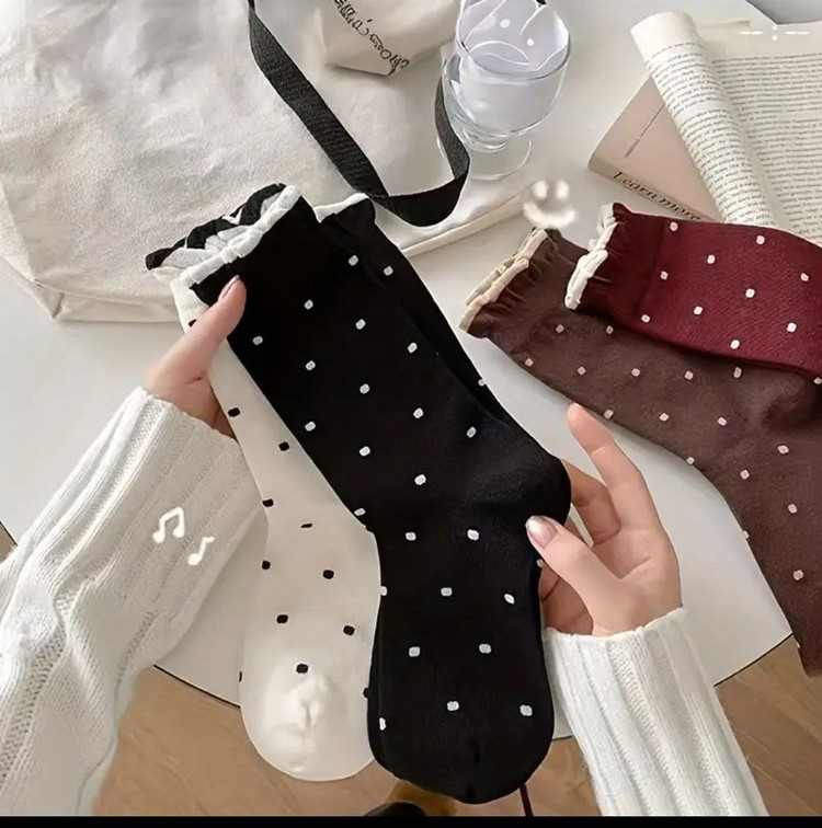 جوراب ساقدار لب چین خالخالی