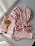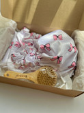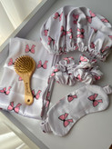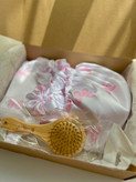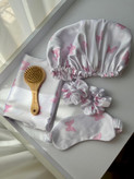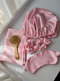پک شامل : یک عدد روبالشتی+یک عدد کلاه خواب+یک عدد چشمبند+دو عدد اسکرانچی لارج+یک عدد برس چوبی